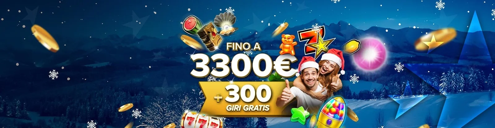 | ? Bonus | Senza deposito: 100 giri gratis (60 per giochi selezionati, 40 per StarVegas Rush), bonus di benvenuto: 100% fino a €300, bonus verifica identità: €3300 + 300 GG, bonus amico: €50 |